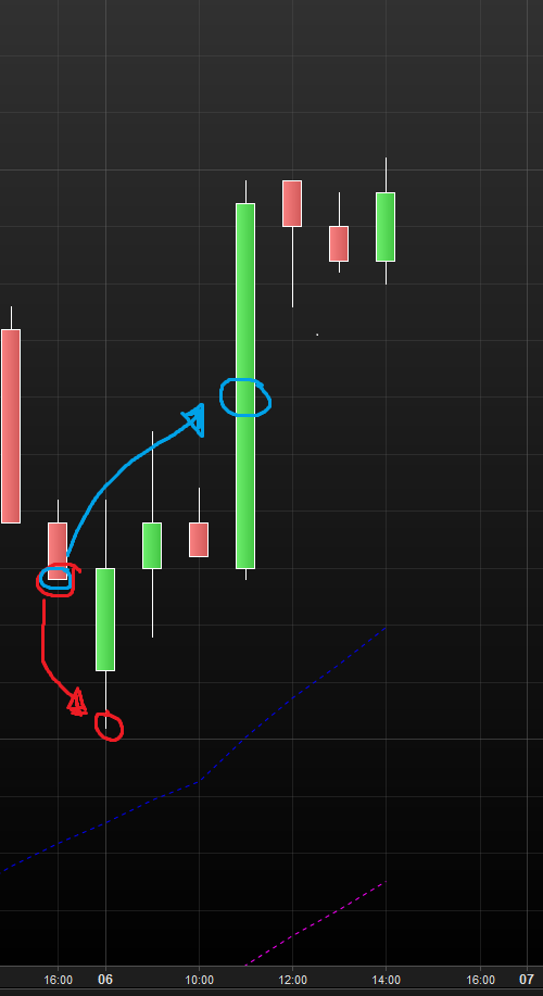 I drew a red circle around the previous day close, and around the lowest point of the opening hour the next day. I included the time/day bar at the bottom of the screen in hopes of showing this.