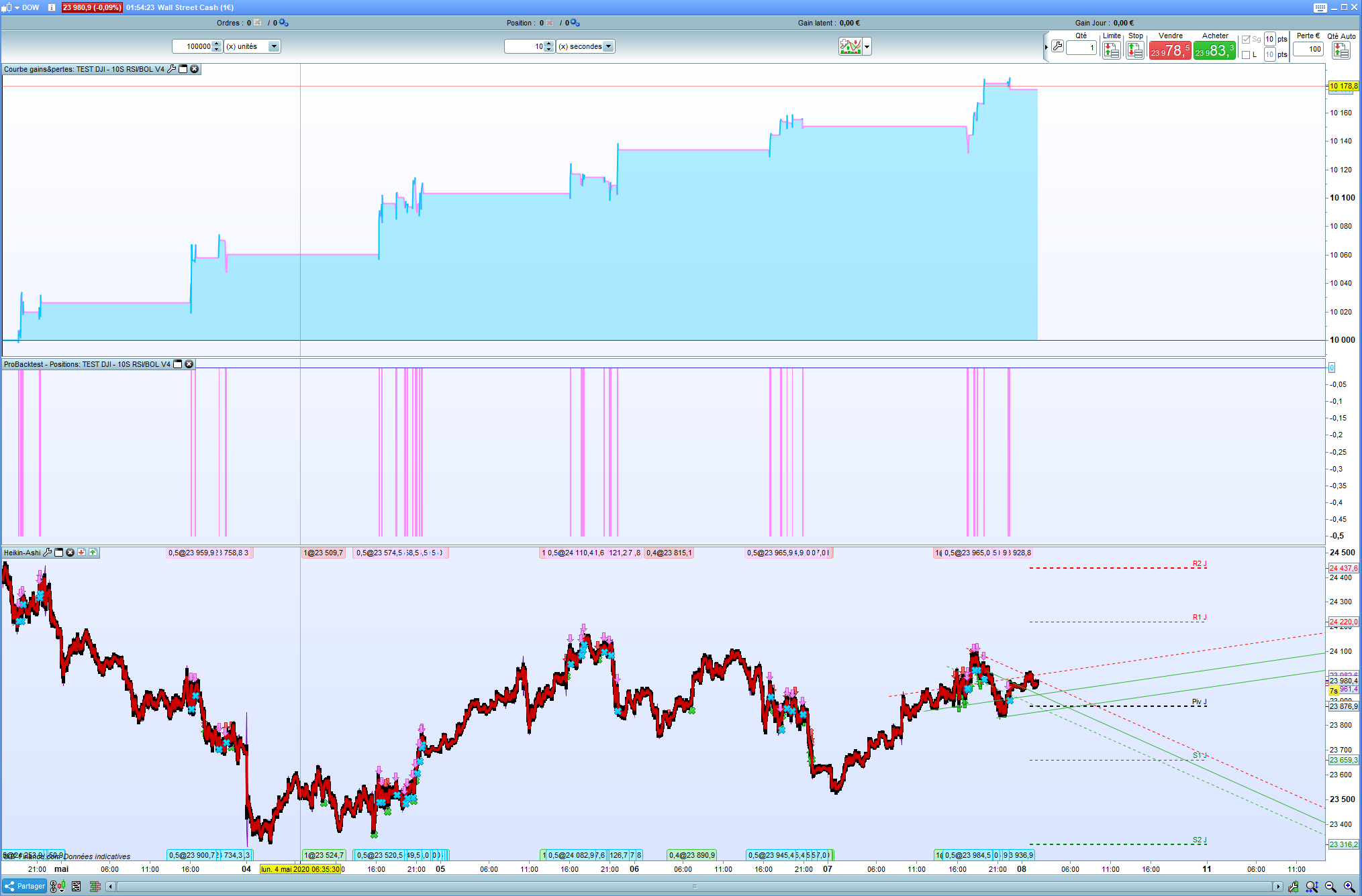 Since yesterday night (21h), 65 euros positive for the DJI, but too much drawdown for me, I’ve stopped it and need to work again I think…