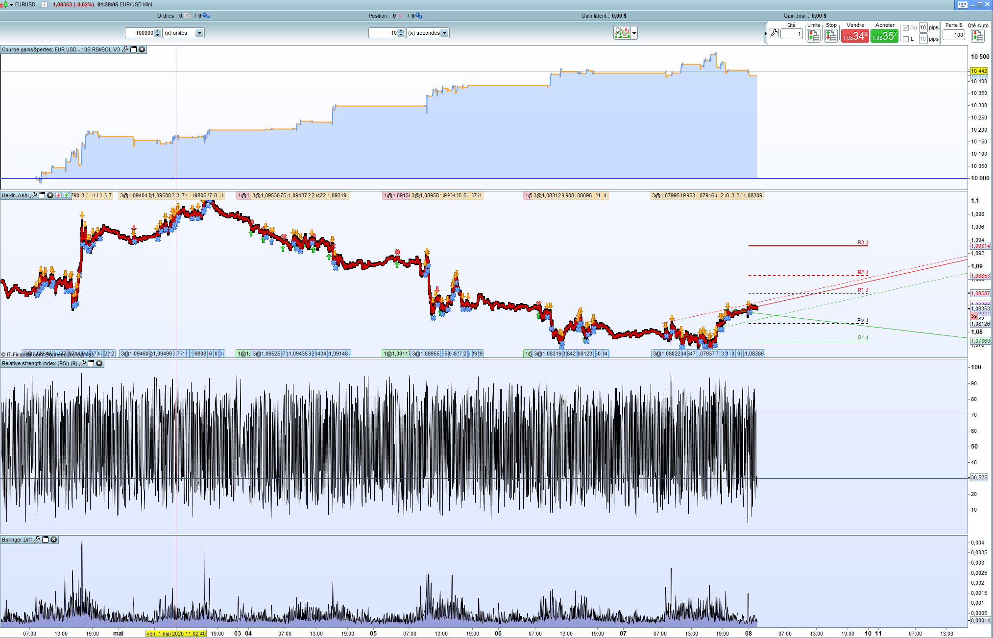 I’ve closed my account today to transfert it on prorealtime.com (more data…) then I can’t try out to find a better algo currently 🙂