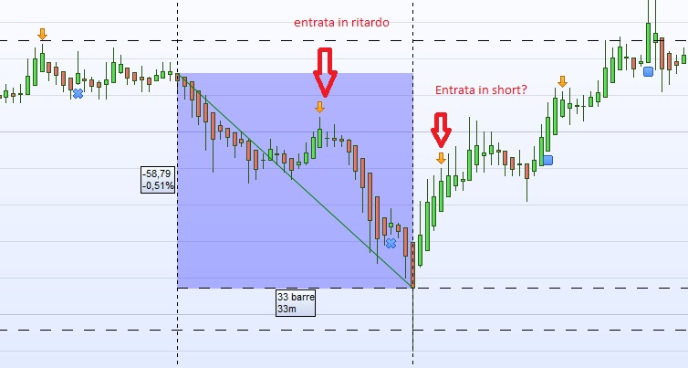 Nello screen 2 un’entrata short in ritardo e un’entrata short nella fase rialzista.
