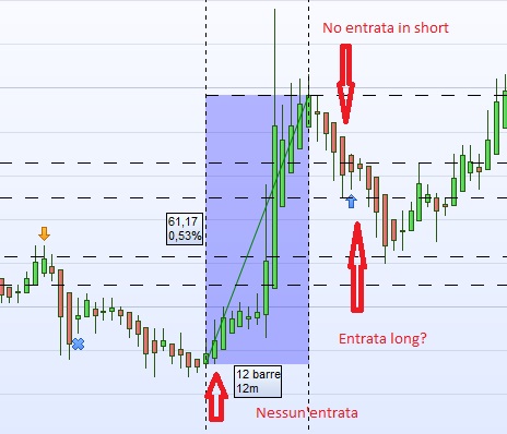 Nello screen 3 una mancata entrata long mancata entrata short e un’entrata long nella fase ribassista.