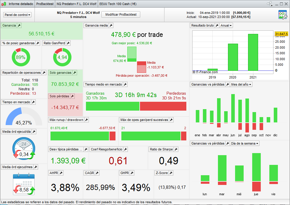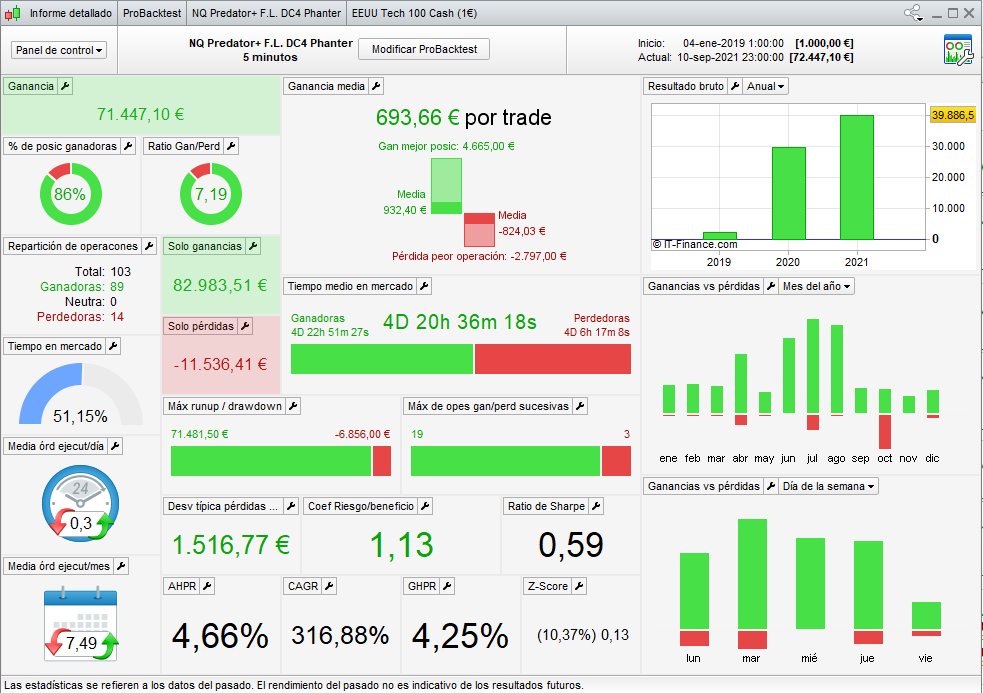 It operates the European DAX index (Germany), it is also a trend BOT, and its time frame is 15 minutes, and European time UTC +2.