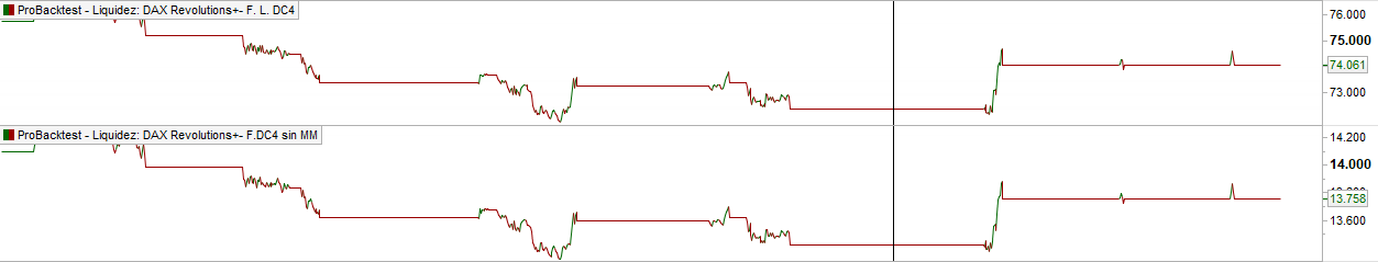 In the screenshots, we see a decomposition, WITH MONEY MANAGEMENT on top, without MONEY MANAGEMENT on the bottom.