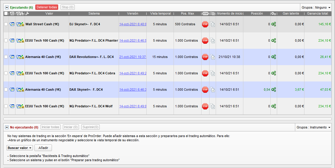 The first BOT trades the European DAX (Germany) index, the second BOT trades the US DOW JONES index.