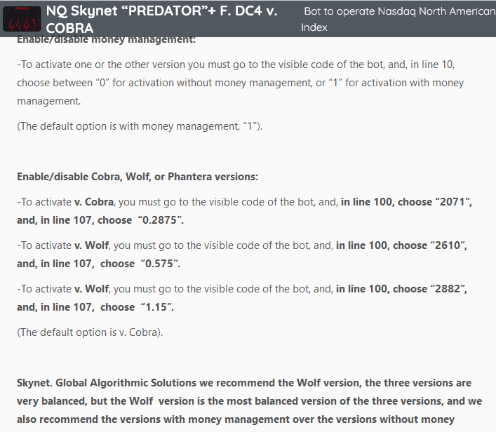 Please understand that “Predator” is the first bot we upload to the Market Place, we did not know exactly how the system worked.
