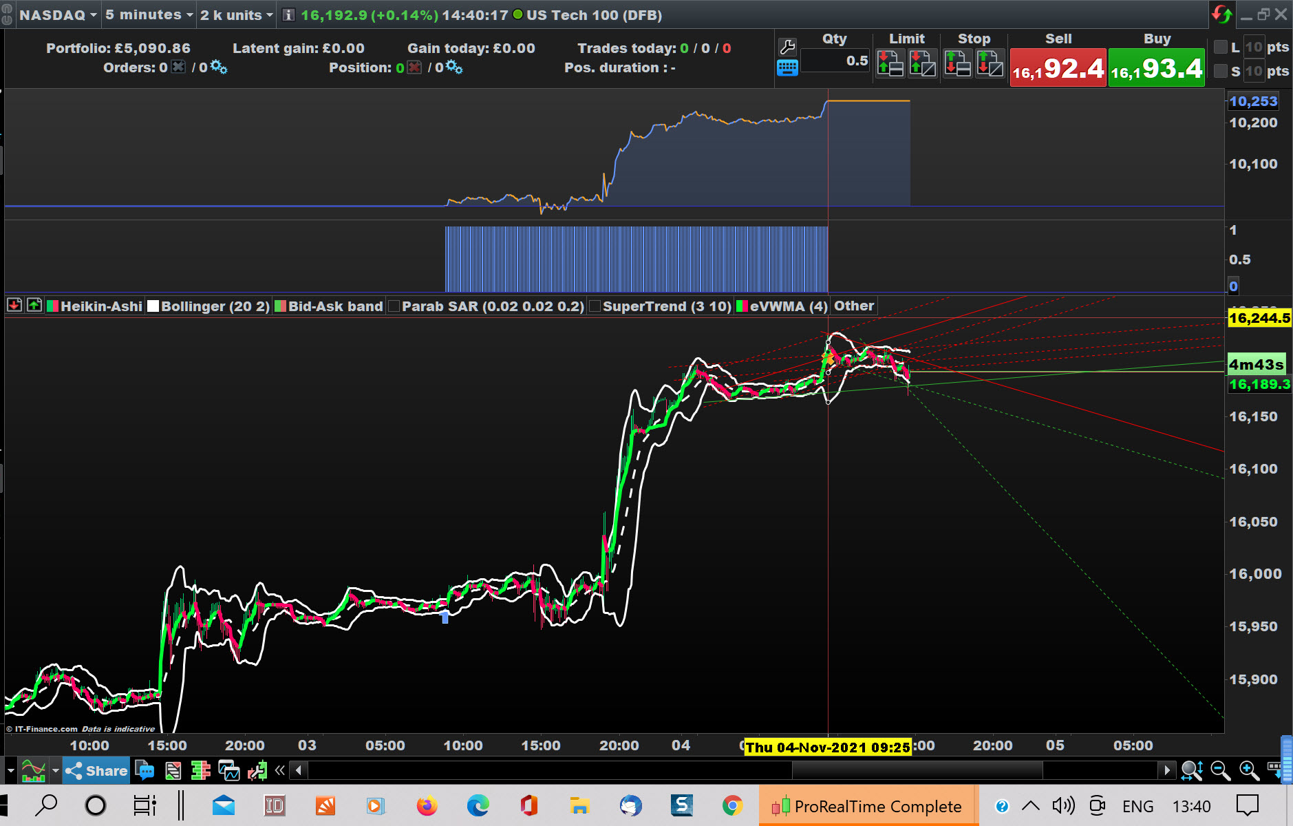 - Backtest on 5k bars or above and latest trade still running at 14:35 today / 4 Nov 21.