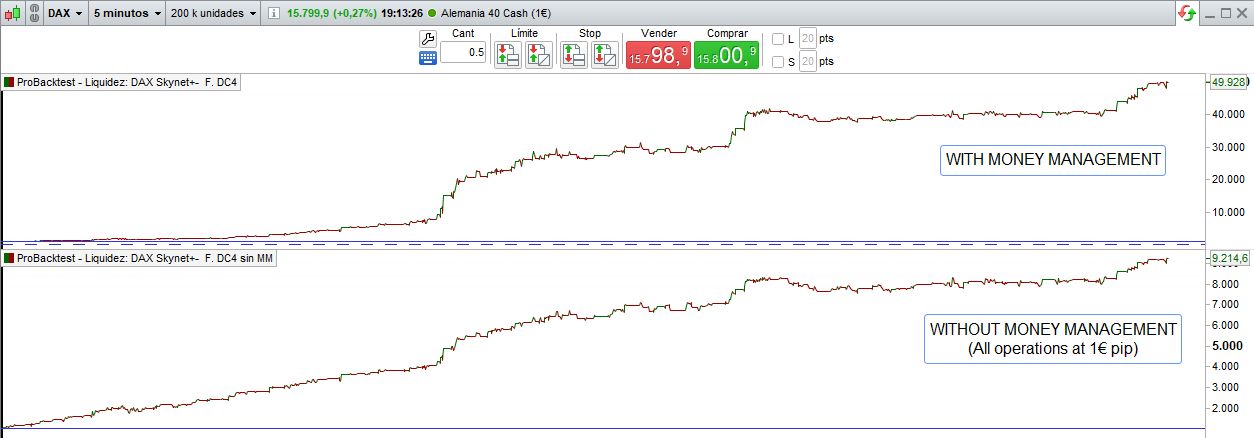 If you decide to activate the version with Money Management, keep in mind that in some accounts your broker the minimum position size is € 1 pip.