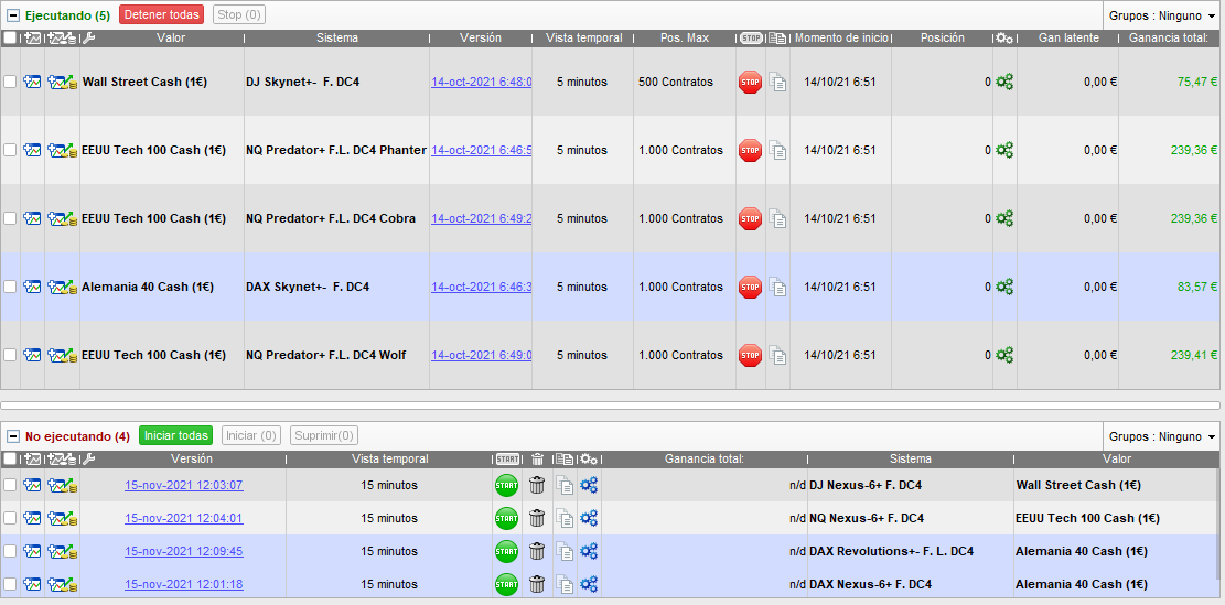 Currently, the 3 operations of the 3 versions of the Nasdaq Skynet “Alpha Predator”, and the operation of the Dax of the Skynet “Beta Predator” are still in the market.