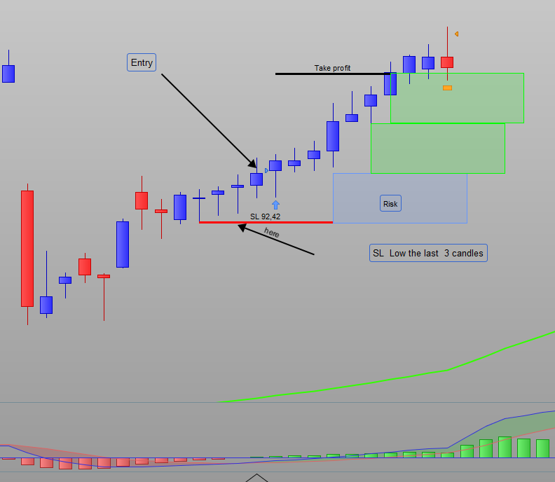 Hier habe ich auch den Gewinn addiert, der dem 3-fachen des Stop-Loss entspricht: