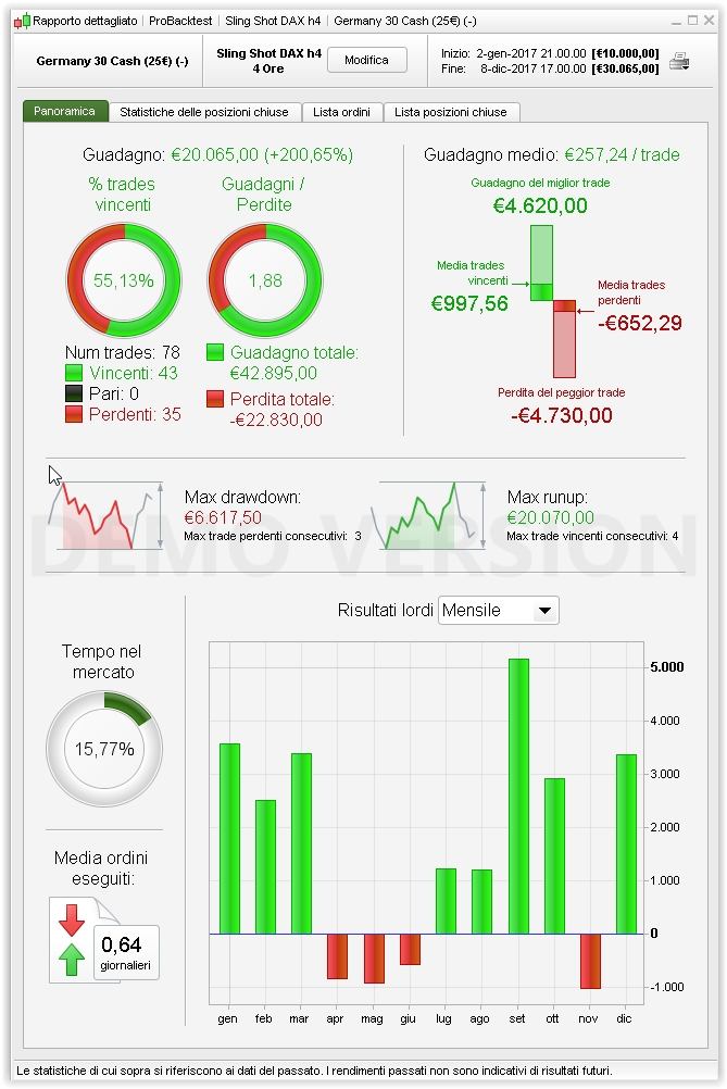 L’ho provata sul DAX a 10 minuti e 4 ore, perché sono gli unici TF dove risultava profittevole.
