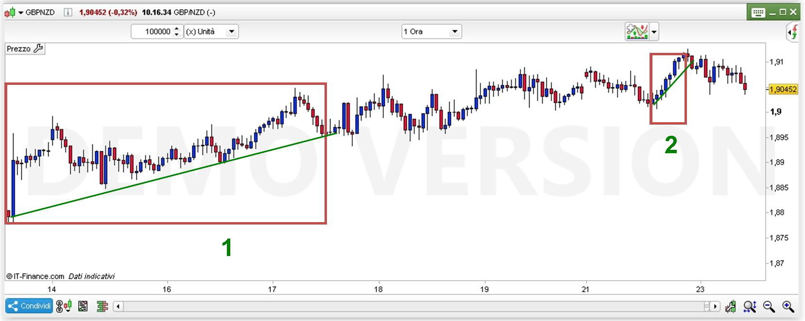 - in cui è necessario un bel numero di candele per avere un’idea precisa dell’inclinazione (è una situazione più affidabile in un periodo più lungo)
