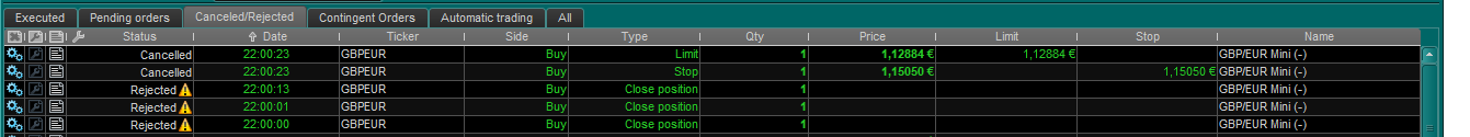 Now my position has closed and I have (as you can see in the picture below) three rejected orders that says=