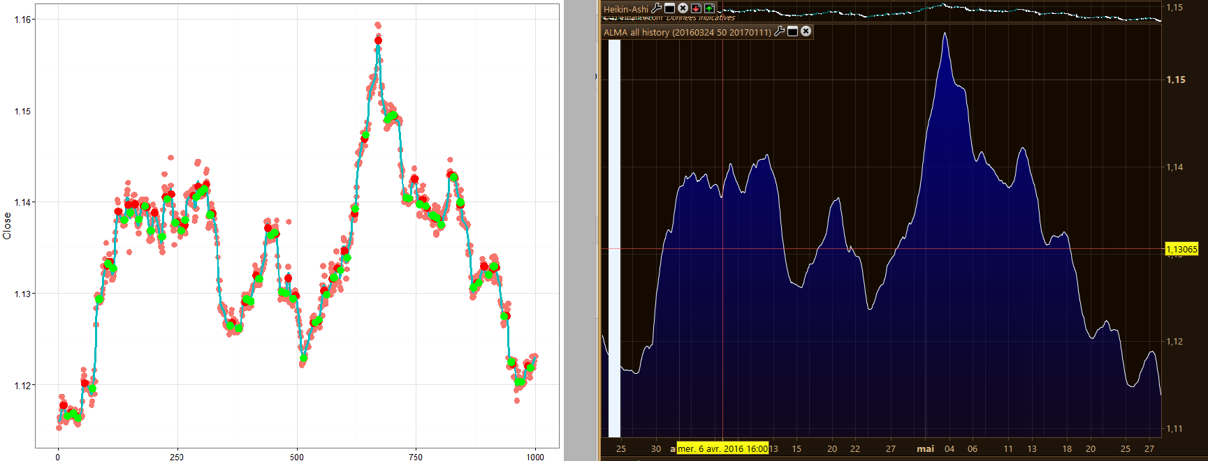 An ALMA moving average could be useful, since it is calculated within a gaussian filter (what Ksmooth named ‘bandwidth’), but it would need the whole history to compute, I’ll look further into this one and let you know.