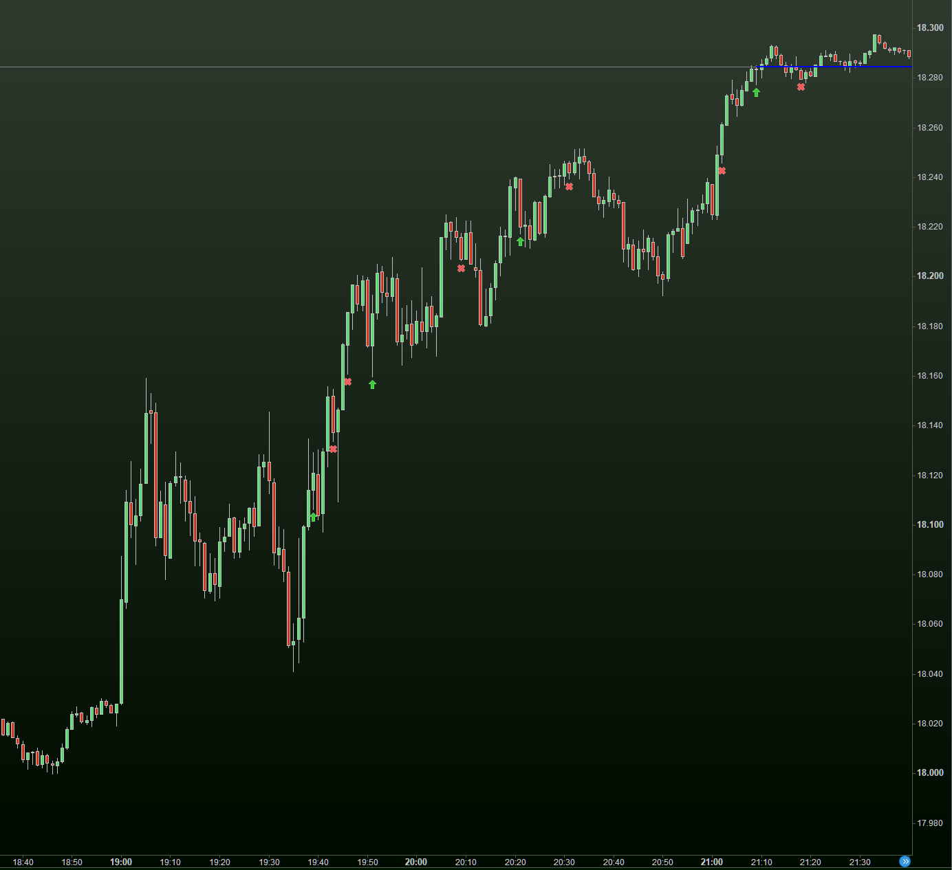 Combining both pictures, you can see that the activity (volatility) stops at ~ 19:51, the time that Powel was finished (I did not track this exactly), IG immediately entering trades again which they should have done all along, once in “volatile mood” which you can see on the chart itself. Thus, with IB now all stops trading because trades are in for these fewer systems (or don’t go in any more with EUR/USD as the leader of the pack). And thus :