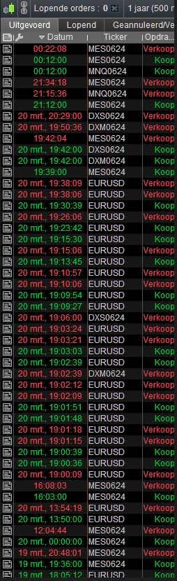PS.: On a closer look, a first trade entered at 19:39. Below the list of trades from IG with the notice that all “Verkoop” are exits, and the “Koop” are Long entries.