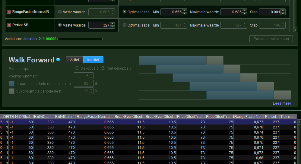 The results suddenly don’t fit previous backtests and I can’t understand why. Now look what I captured in one screenshot. It just can’t exist but it does. A 327 I fixed in the Optimizer form is n a later optimization (around RangeFactorNormalB might you be interested) used as 237. Is the whole G-D PRT now dyslectic ?