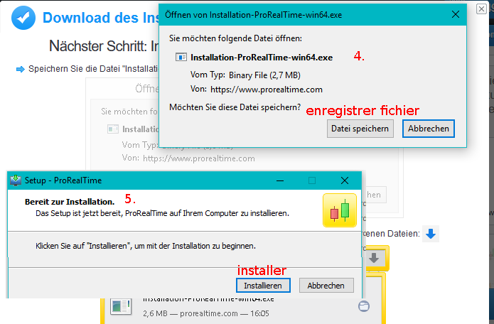 J’ai enregistrer le fichier installation ProRealTime-win64.exe dans mon dossier Downloads.