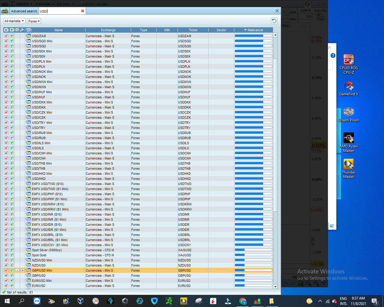 There seem to be more currency instrument ticker starting with USD/ ….