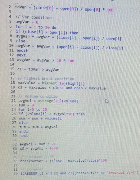 Alle righe 18 e 19 verifica se c’è stato un breakout del massimo dei 10 giorni precedenti.