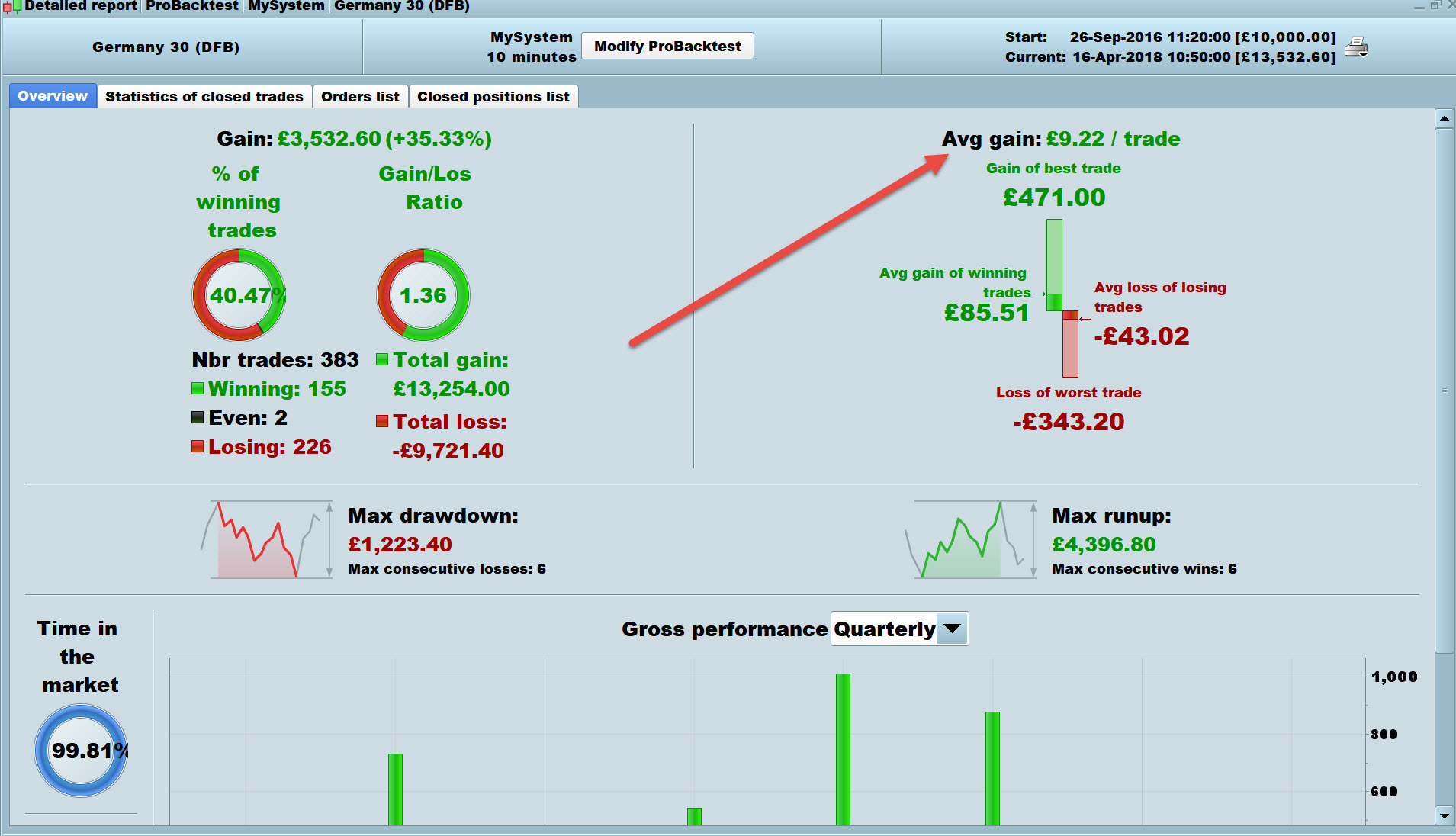 See attached for where Average gain is shown.