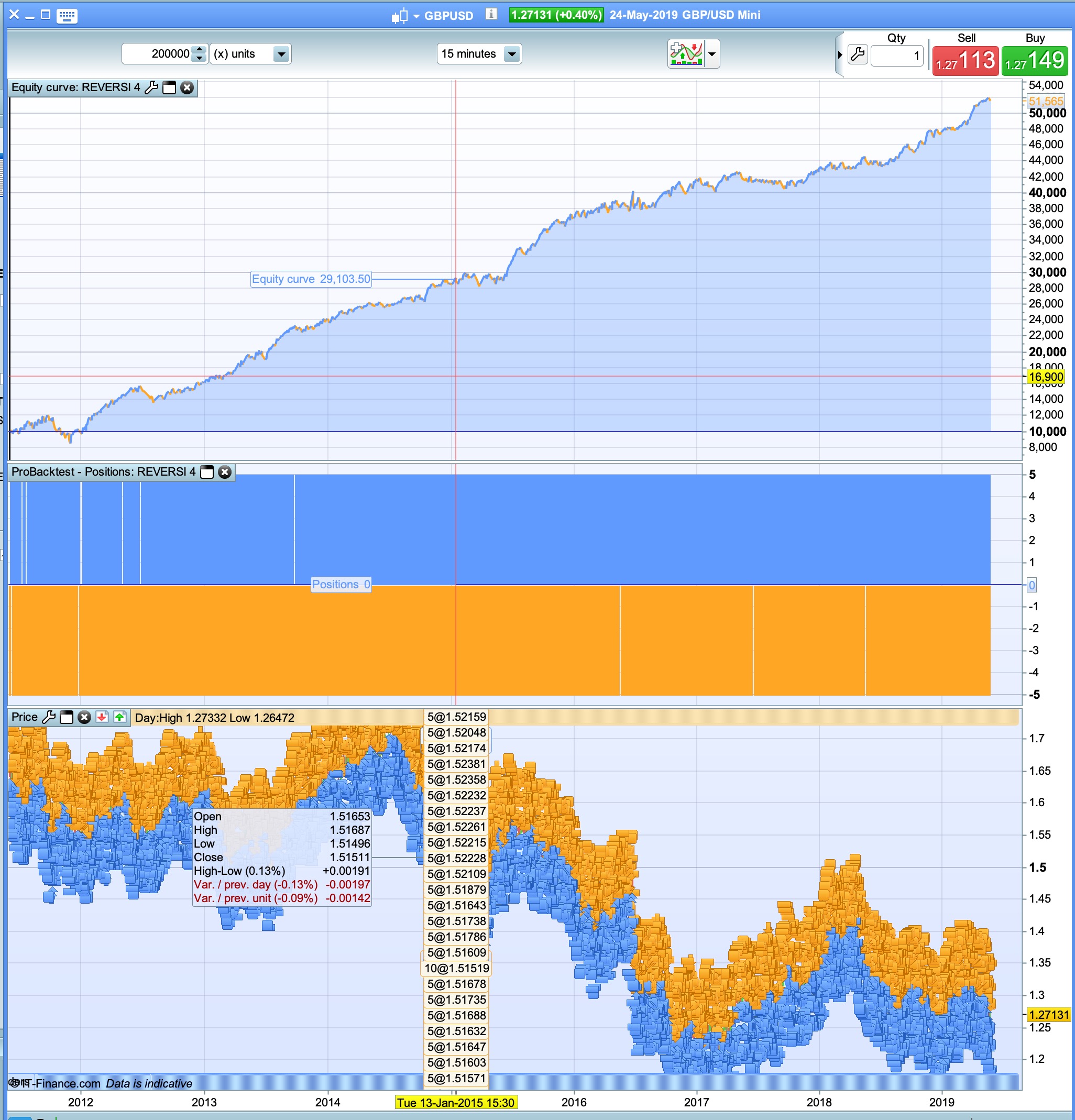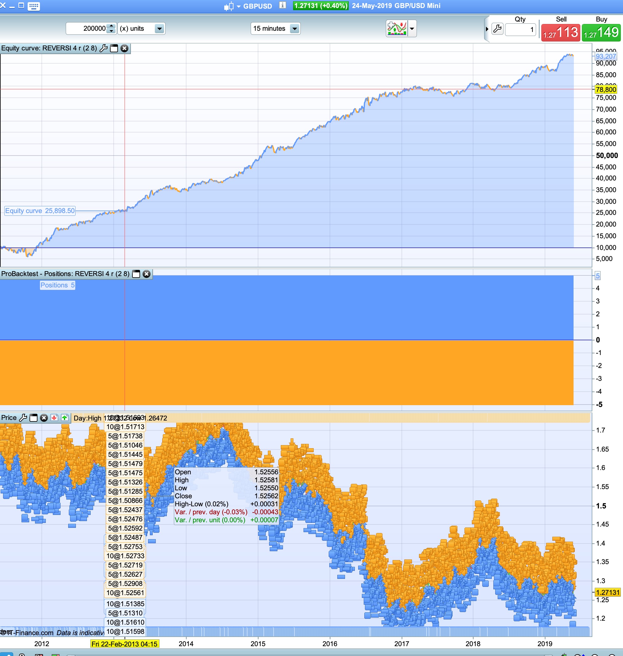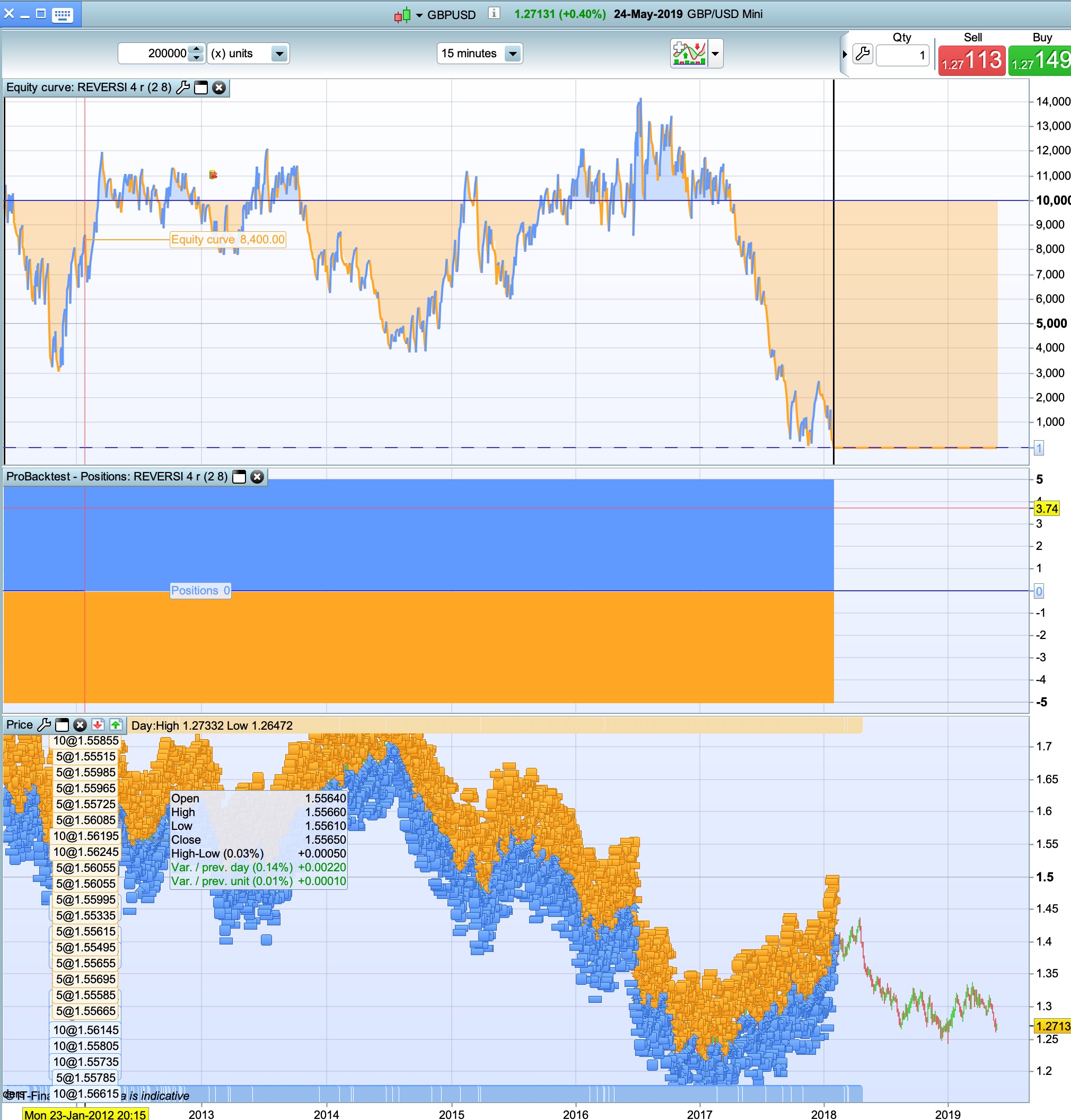 same thing with this code on gbpusd 15min with no spread. Changed the buy/sellshort of original code.
