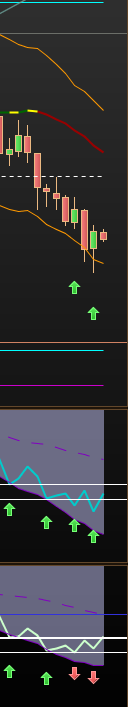 So, the lower band on your pricechart is also giving the same signal: Open and close above the band but low below the band.