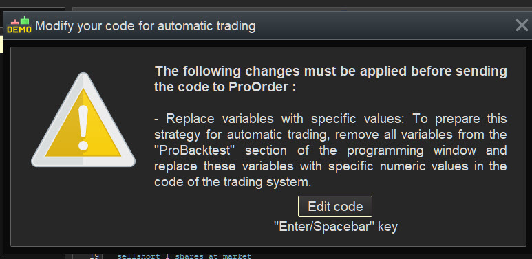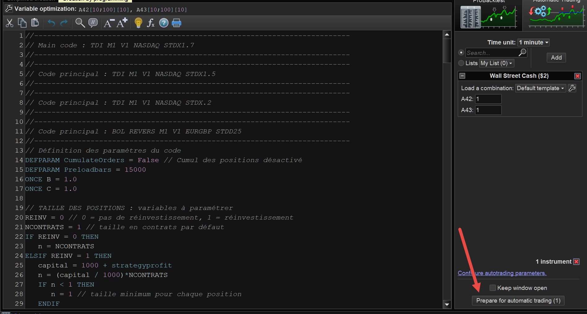 -If I go to the button “Indicators and trading systems”, then “prepare for automatic trading” i get “…remove all variables from the probacktest section…”