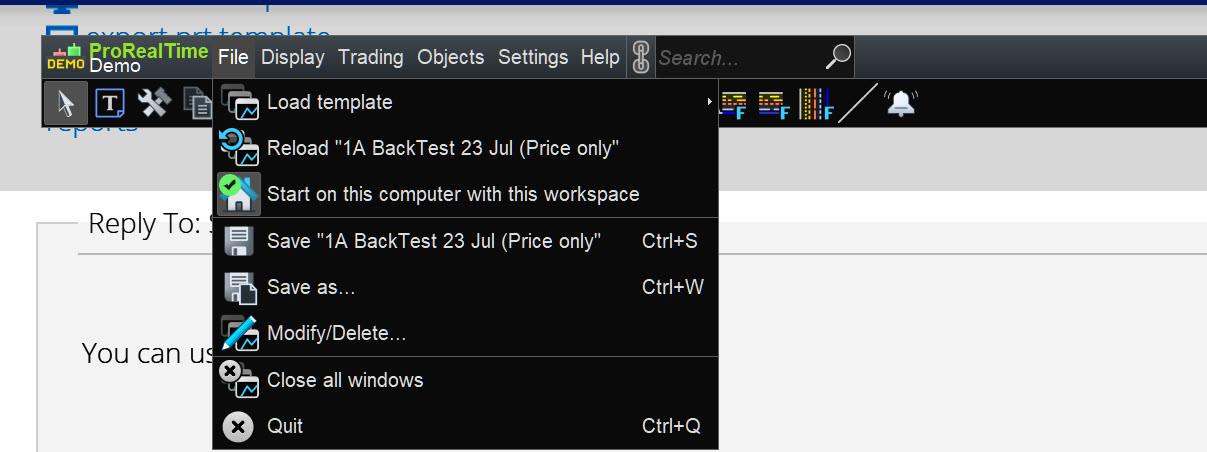 Would you like to reload an other Template than the one last saved, than you’d need to use Load Template … you see as the first menu option in GraHal’s screenshot. This obviously means that if you at a next start of the platform want to use an other Template than the one last saved, you would need to use that first menu option. OR :