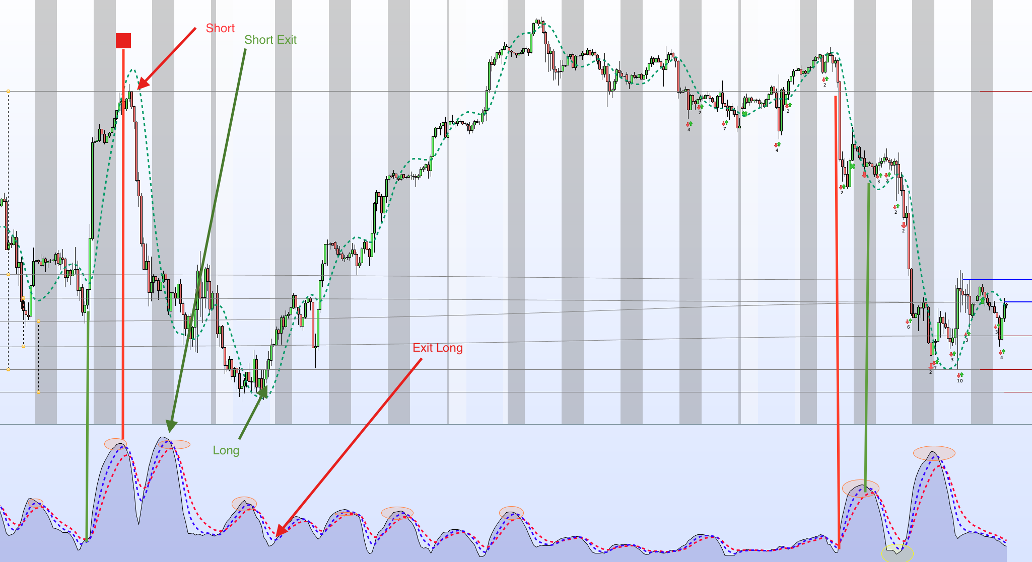 What I observed on the attached graph, is that if you go Long or Short according to your entry point and want to optimize Exit point (not too early, not too late), then you should Exit at the next turning point of the STD. Obviously I tried the following but it didn’t give optimum result.