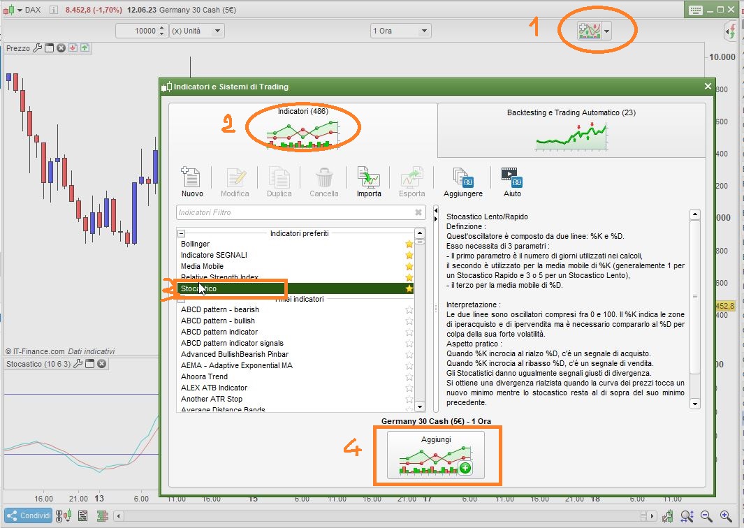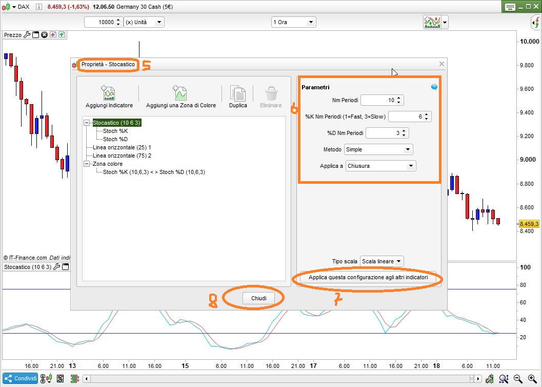 Buongiorno, desidero usare l’indicatore Stocastico Lento /Slow  con i parametri 10-6-3 come devo fare?