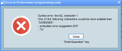 Indicators/Oscillators should only use RETURN as the last line, not SCREENER which is a keyword reserved to ProScreener only, so you should remove (or simply comment out) that line.