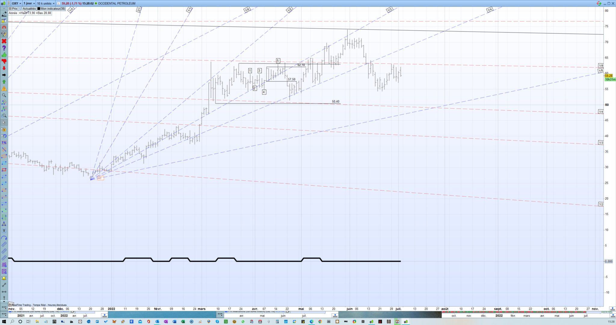 J’ai ajouté “return test” au code et inséré l’indicateur sur le graphique. cela me donne le résultat ci-joint en image (indicateur test: trait noir en gras et en bas de l’image). Je ne vois pas comment l’exploiter.