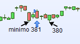 Ho letto qualche cosa nel forum ma non ne sono ancora venuto a capo , potete aiutarmi? Nell’esempio , avrebbe dovuto uscire alla terza candela verde dopo l’entrata in quanto il prezzo ha toccato 380€ andando sotto il minimo della prima candela di set up ( 381€ ) ( due candele prima dell’entrata sul mercato ) .