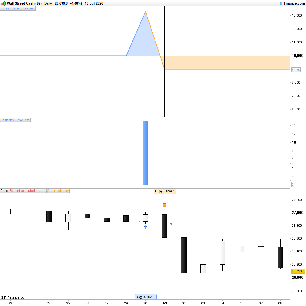In this example, if the size is equal to 15 (or less), the stop loss is correctly triggered, otherwise I get a big loss.