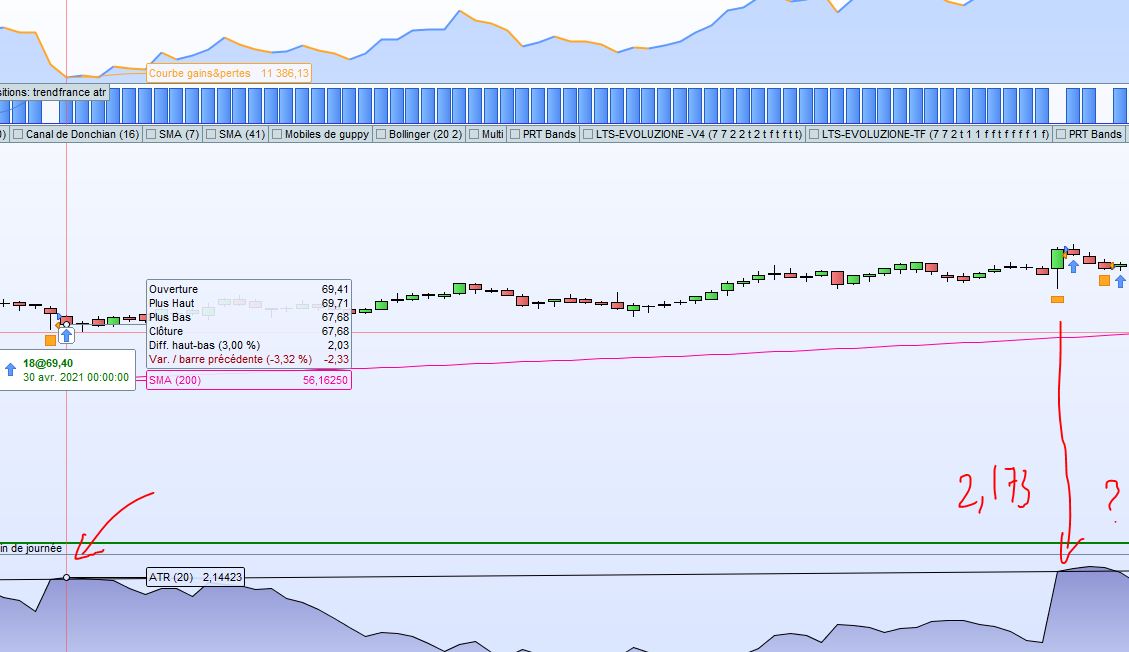 target profit profitfactor*averagetruerange[20] ; Si je regarde les moments ou le code vends, ce n’est jamais 6*l’atr et pareil pour le stop. Voir l’exemple en PJ.