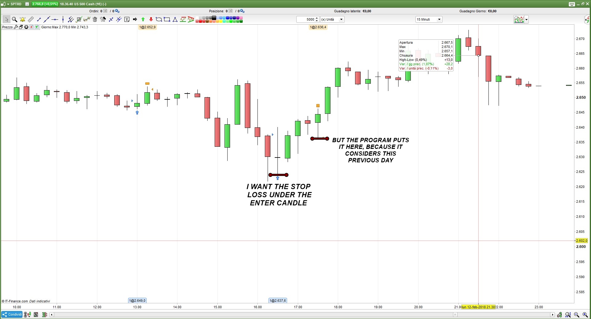 Thanks Roberto and Leo. But the stop does not work as I would like. In fact I want the stop under the minimum of the entrance candle and that it remains fixed there, but now it moves.
