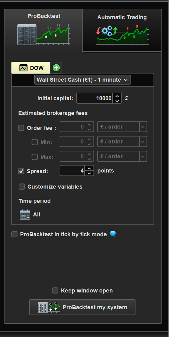Ci-joint le panneau Paramètres pour démarrer un backtest… il n’y a pas de fenêtre « Arrêt et cible » (comme vous le dites plus haut ?).
