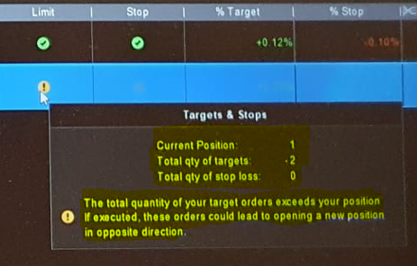 The total quantity of your target orders exceeds your position if executed, these orders could lead to opening a new position n opposite direction.