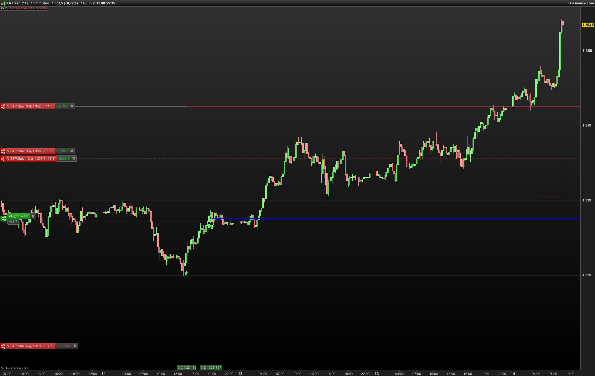 L’ordre qui ne suivait pas comme les autres était la position de 6 contrats prise en 3ème. Je suppose donc qu’il y a eu un souci du côté de chez IG? Je vais surveiller ça sur les prochains trades pour voir si ça se reproduit et éventuellement programmer un trail stop maison dans mon code si ça arrive encore.