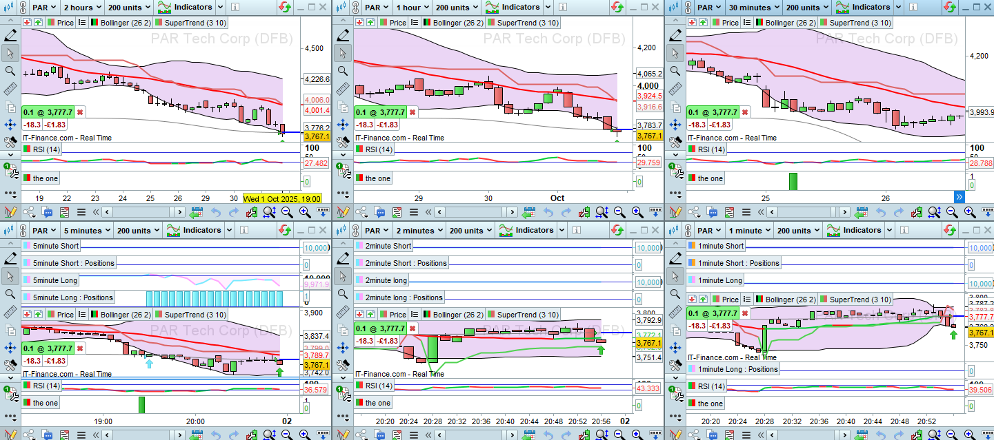 However, using the same indicators and the same 4,2,1 and 30min longer TFs and the shorter 10,5,2 and 1min shorter TFs signal were given on Friday, they are: