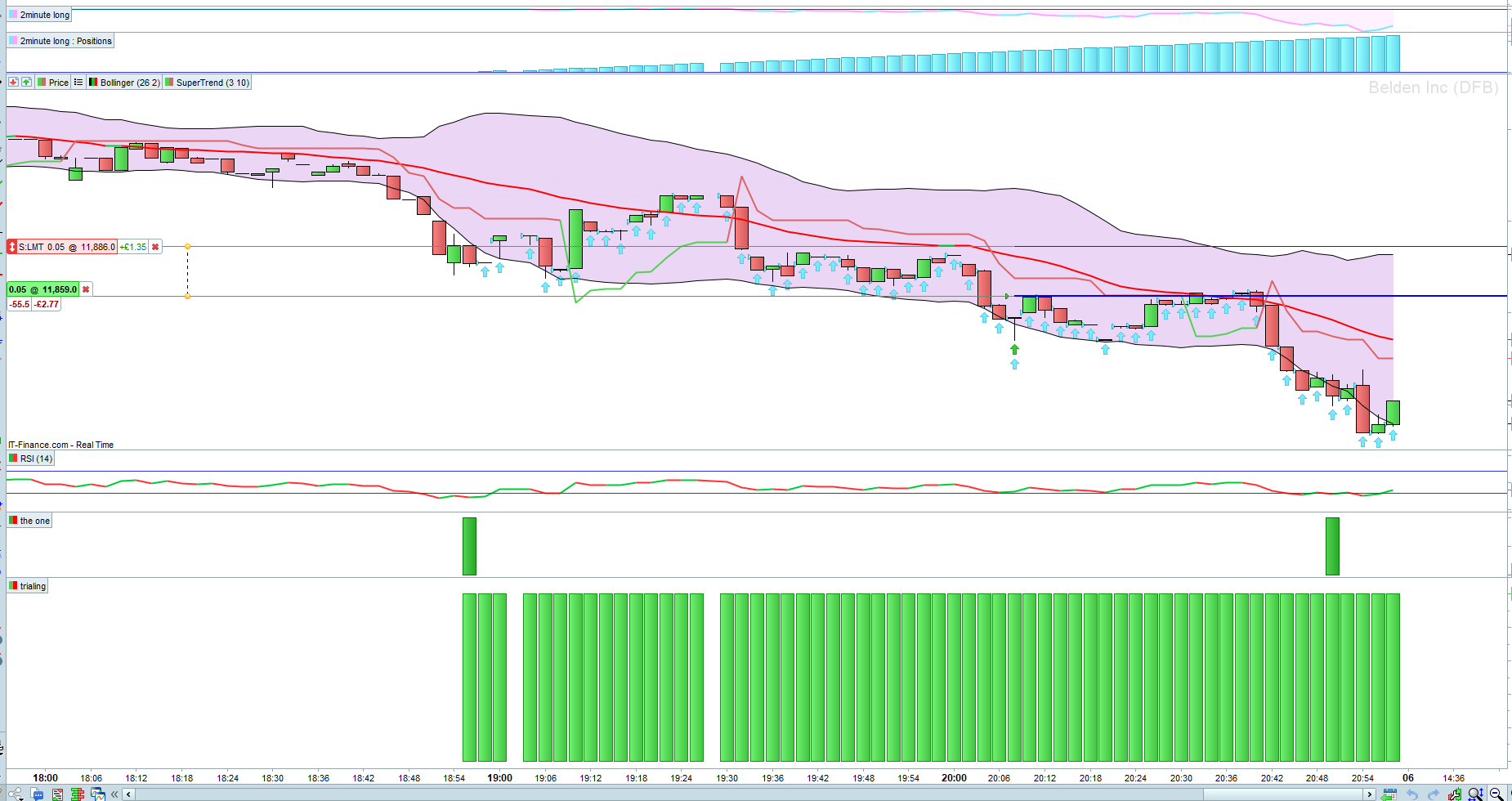 I have added your indicator code to the attached 2 min charts for the following example triggered on Friday afternoon.