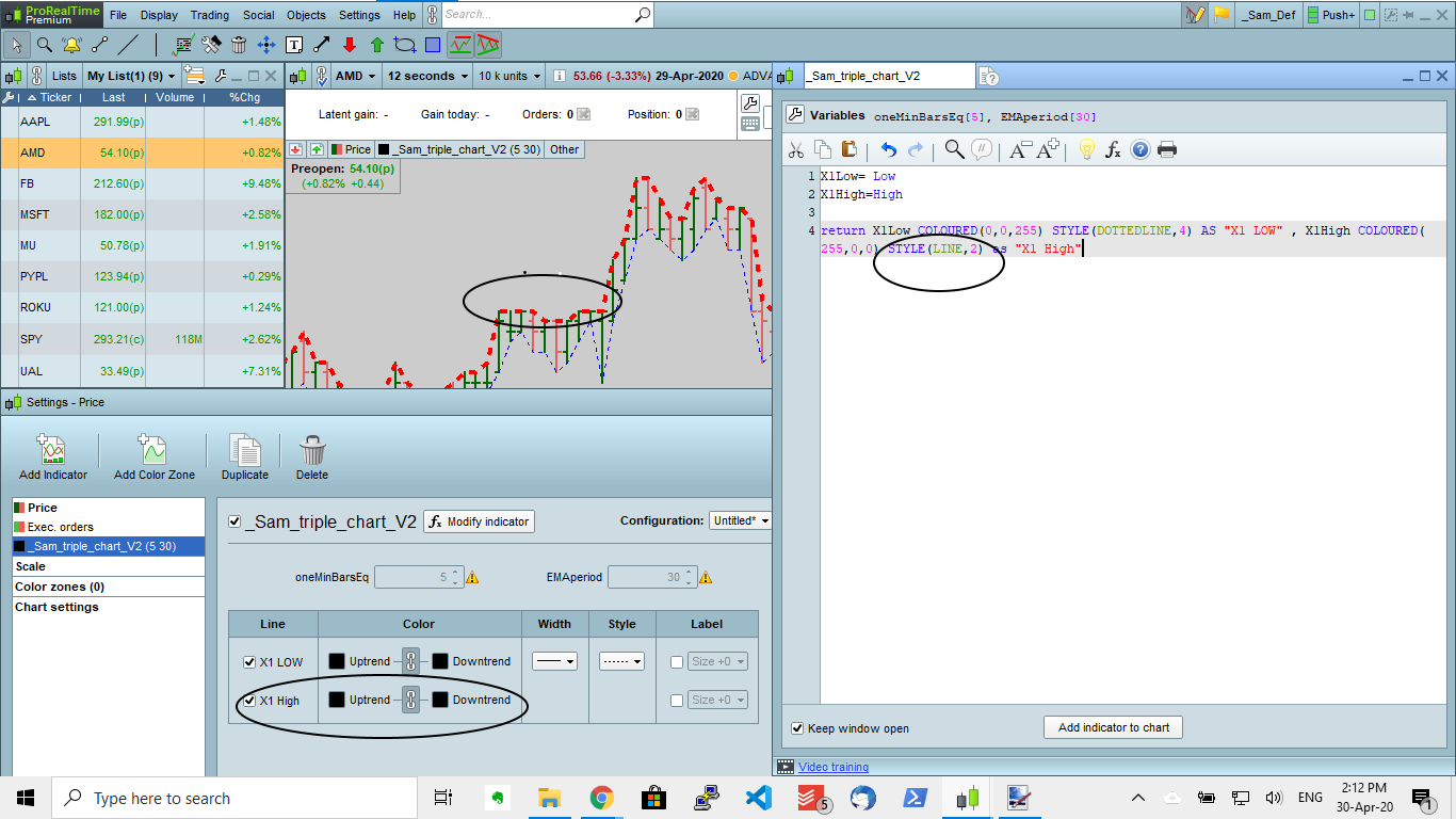 return X1Low COLOURED(0,0,255) STYLE(DOTTEDLINE,4) AS "X1 LOW" , X1High COLOURED(255,0,0) STYLE(LINE,2) as "X1 High"