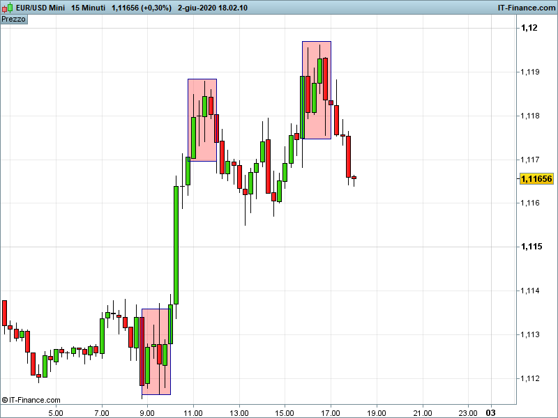 Ho difficoltà ad impostare l’indicatore che mi rilevi tre candele successive con chiusura e apertura all’interno del minimo e massimo della quarta candela precedente.