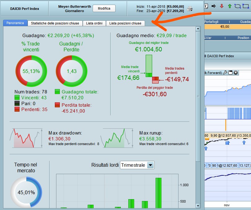 Poi vedo che se anche abilito il Walk Forward, non mi mette, come nel suo screenshot, le statistiche del Walk-Forward nelle schede del Rapporto dettagliato, così come non mi mette la percentuale dell’efficienza dello stesso (al suo posto mi mette il tempo sul mercato). Ho provato a guardare tutte le opzioni di ProRealTime ma non ho trovato nulla.