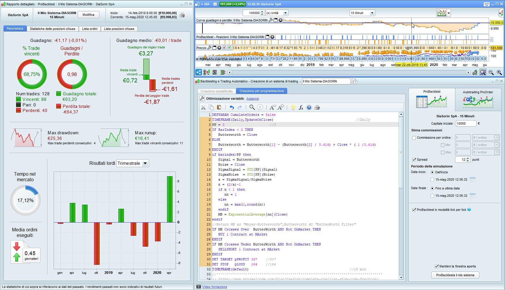 Ho riprovato la strategia esattamente come la sua su DIASORIN, piattaforma Binck, timeframe 15 minuti.