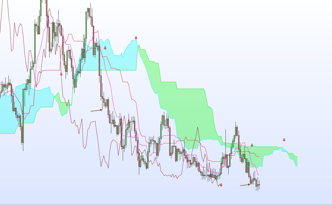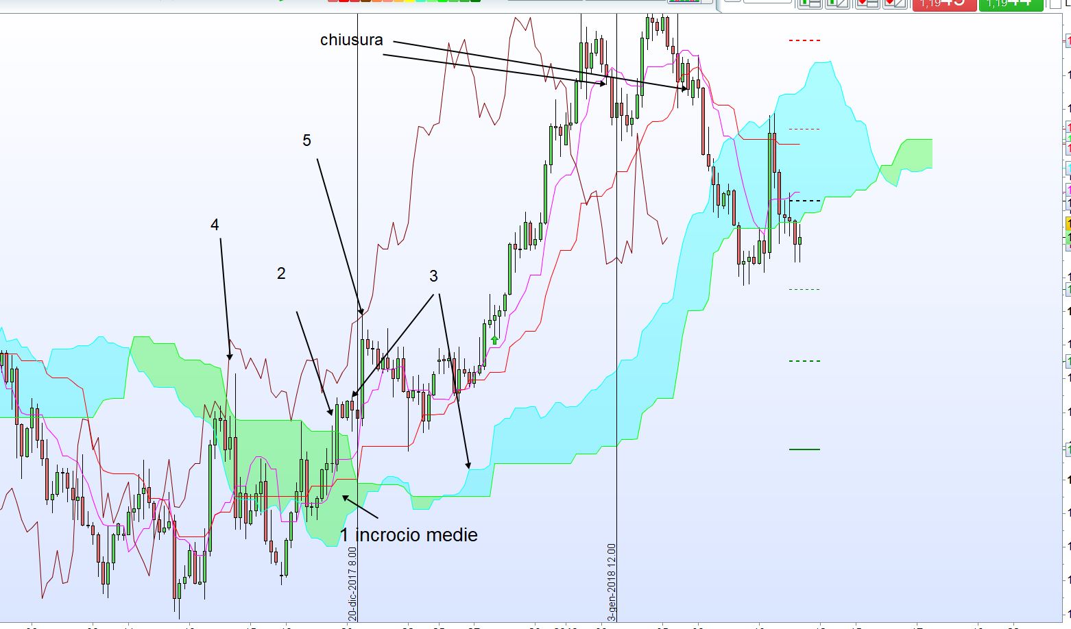 Prova a ricercare nel forum, scrivendo ichimoku nella casella di ricerca che si apre quando passi col mouse sopra il tuo avatar in alto a destra.