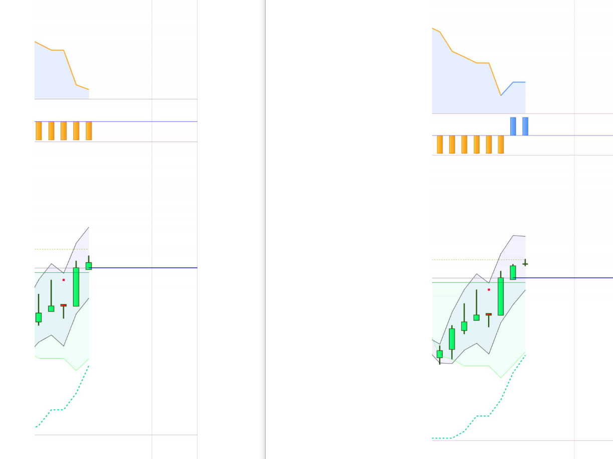 Perchè nella foto a SX in cui entra proOrder, proBackTest non entra? si vede dalle linee arancioni in alto (ma entra solo a candela conclusa, foto di dx)