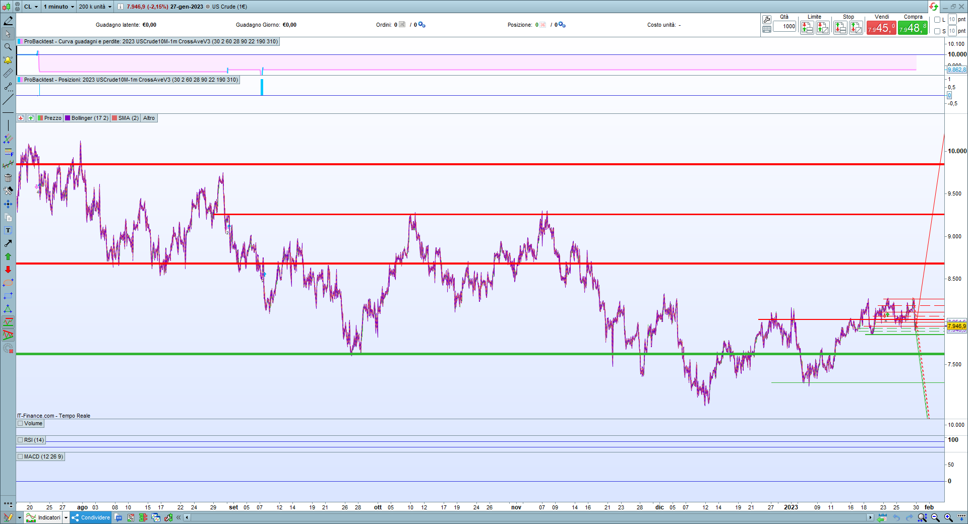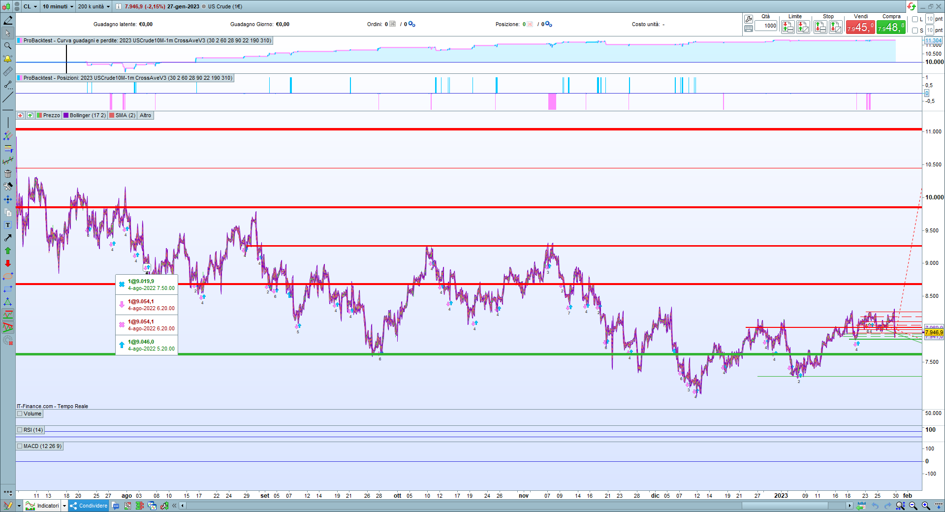 Nelle immagini ho utilizzato 200 K barre a 1 minuto che partono da luglio 2022 e lo stesso periodo di partenza per le barre a 10 minuti.