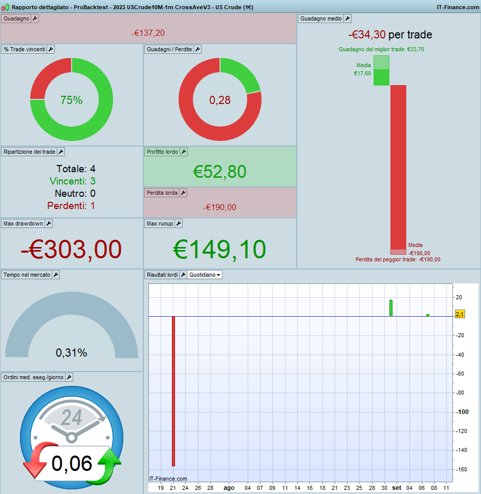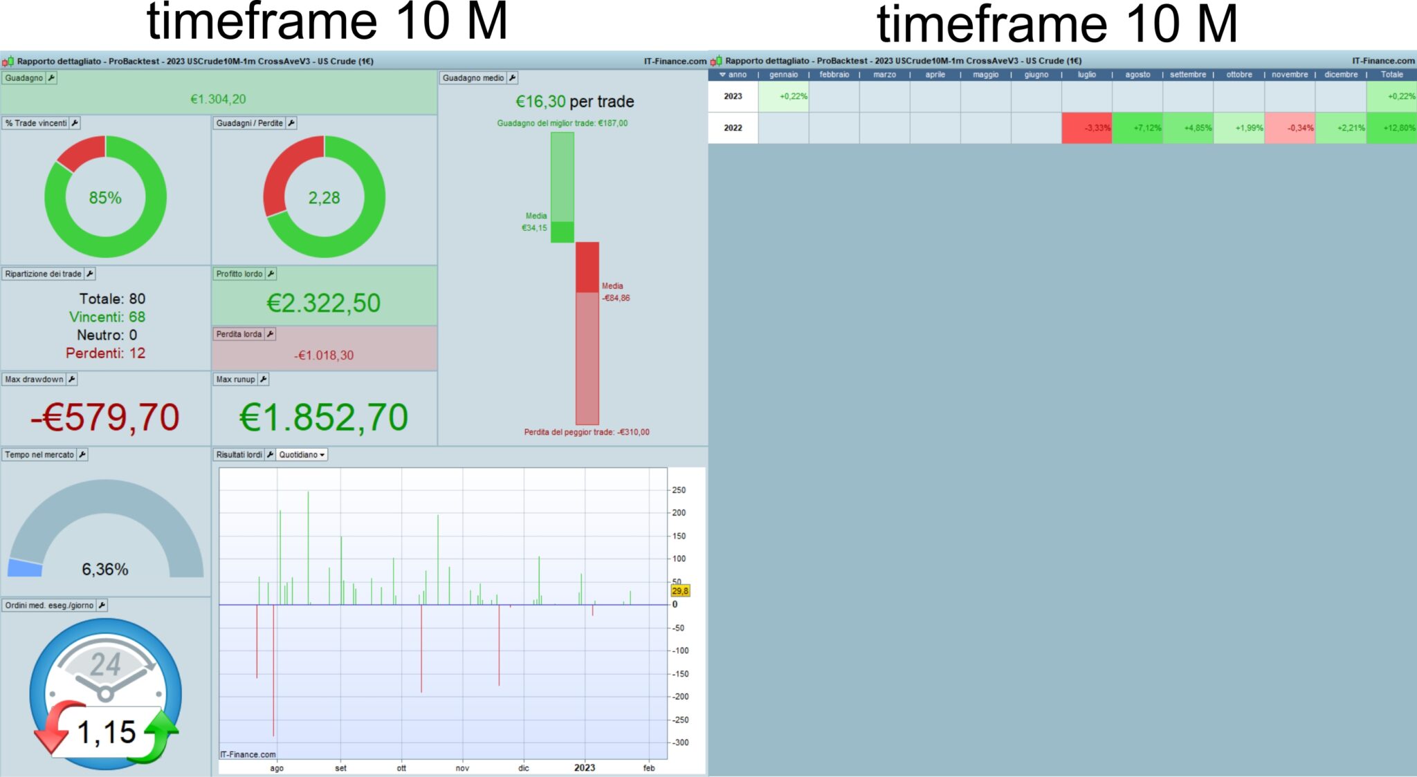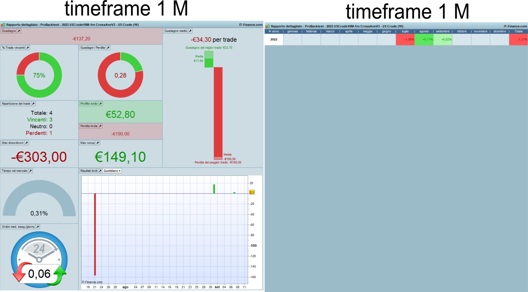 Dalle tue foto non si capisce bene quale siano i TF usati, le unità ed il periodo di backtest.