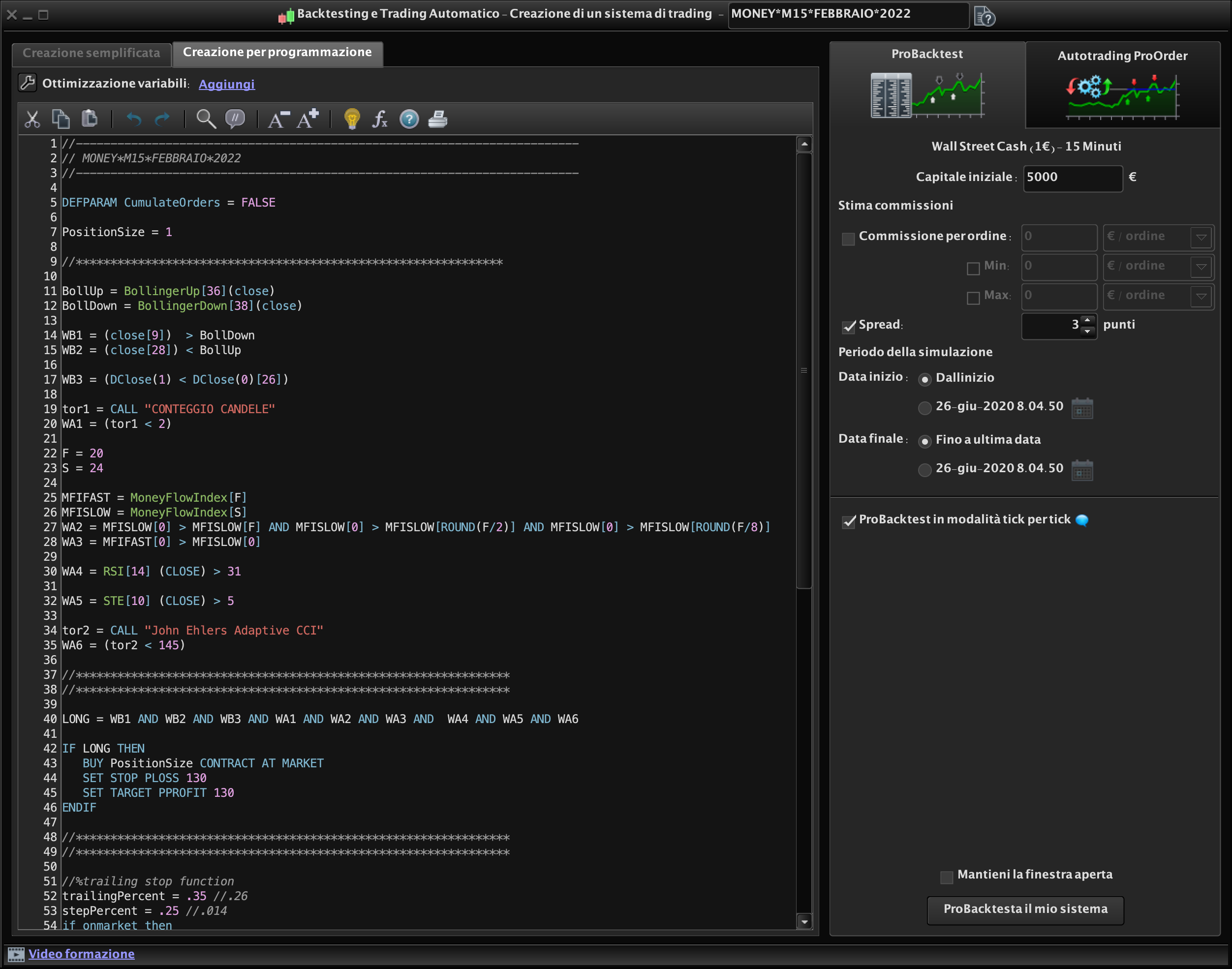 Grazie Fabiano, potresti spiegarci come hai sviluppato la strategia? Dovresti anche condividere il codice ITF della strategia per consentire alle persone di ottenere gli indicatori necessari che stai utilizzando con CALL.